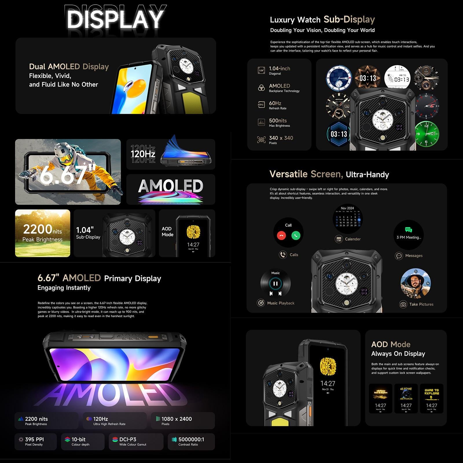 India Gadgets - Ulefone Armor 29 Pro Thermal Version 5G Rugged Android Mobile Phone: 16Gb + 512Gb: 50MP + 64MP Night Vision Camera: 6.67" FHD+ + 1.04" Rear Display: 21200mAh Battery with 120W Fast Charging + OTG Reverse Charging: 1000 Lumens Camping Light